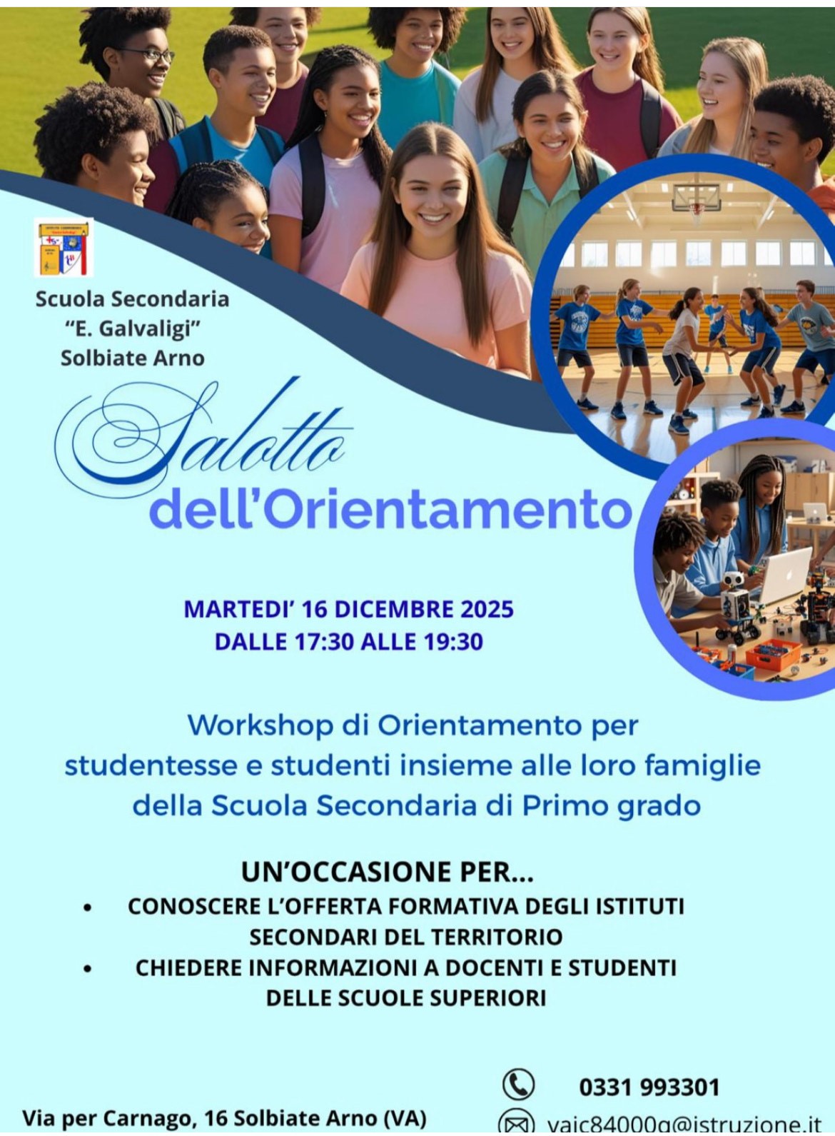Pubblicato: 12 Dicembre 2025 Condividi Facebook Twitter Google Plus Whatsapp Telegram Email SALOTTO DELL'ORIENTAMENTO - MARTEDI' 16 DICEMBRE P. V. Scuola Secondaria "E. Galvaligi"
